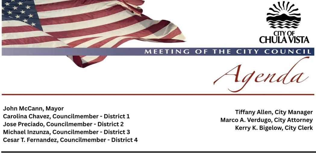 Chula Vista, CA – The Chula Vista City Council will hold its regular meeting on Tuesday, January 6, 2026, at 5:00 p.m. in the Council Chambers at 276 Fourth Avenue. Residents are encouraged to attend in person or tune in virtually, with live streaming available in both English and Spanish via the city’s website at chulavistaca.gov/councilmeetings or on Cox Channel 24 (English only). On-site Spanish interpretation will be provided, ensuring accessibility for the community’s diverse population.The agenda promises a mix of routine approvals, community recognitions, and forward-looking actions, including discussions on public safety technology and housing grants. Mayor John McCann and council members will also address annual appointments to regional boards and select a Deputy Mayor for 2026.Highlights of the AgendaThe meeting kicks off with special recognitions, honoring the 2025 Human Relations Commission Award recipients: Kensington Duran-Almodovar, Lucia Napolez, Let’s Go South Bay, and Edilberto Samala. Mayor McCann will follow with an awards presentation celebrating the 2025 Starlight Parade, spotlighting community achievements and holiday spirit.A packed consent calendar includes several items expected to pass without debate unless pulled for discussion: